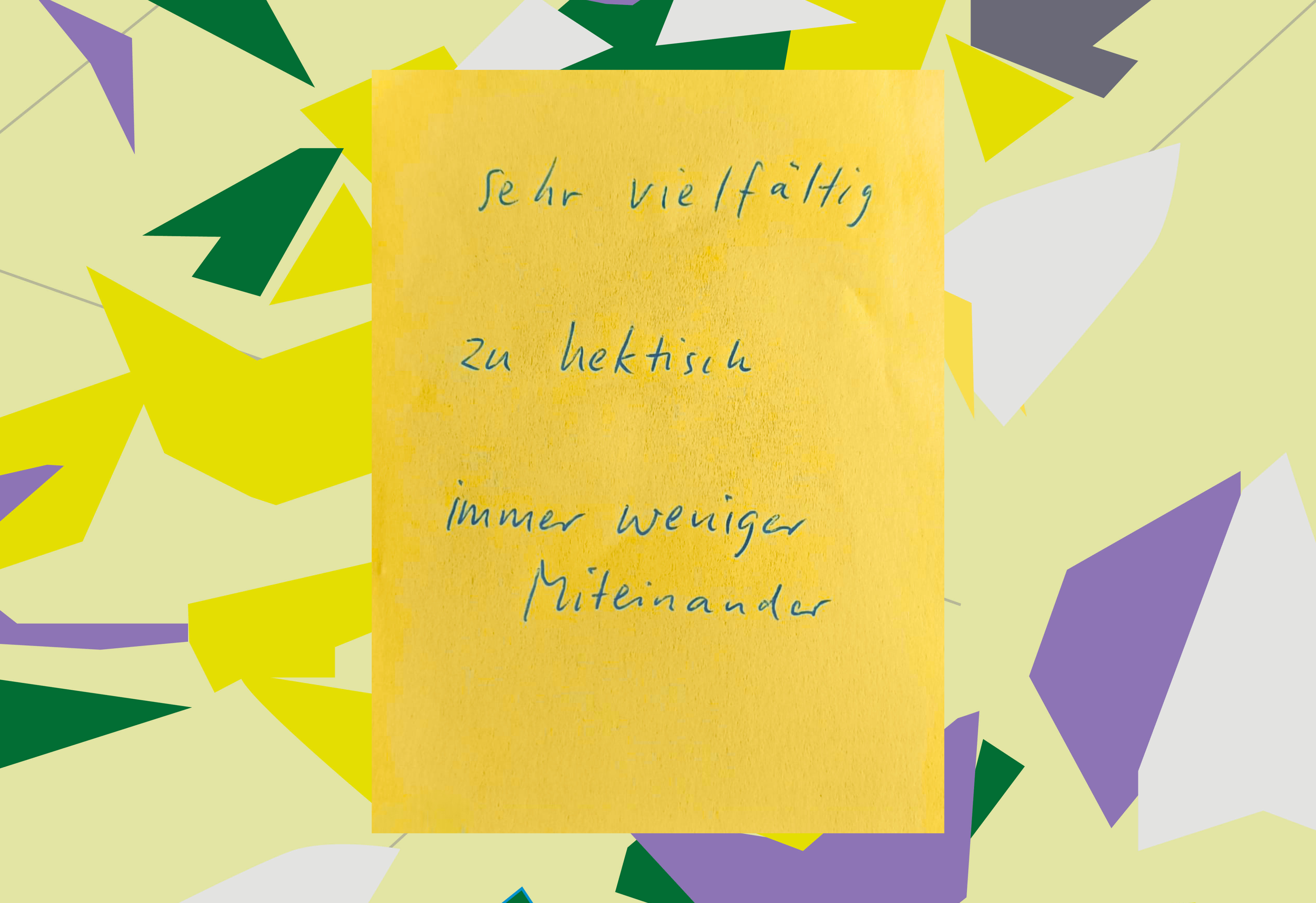 Mit dem Stadtlabor sammeln wir Stimmen und Gedanken von Münchner:innen, dort wo sie gerade sind: in der Fußgängerzone, auf dem Wochenmarkt, bei Veranstaltungen oder im Flur der Universität. Ohne großen Aufwand können alle ihre Perspektive einbringen - hier haben wir gefragt:
