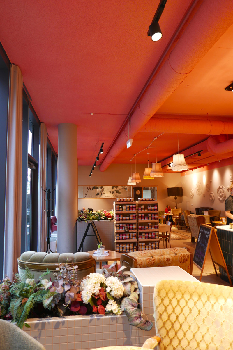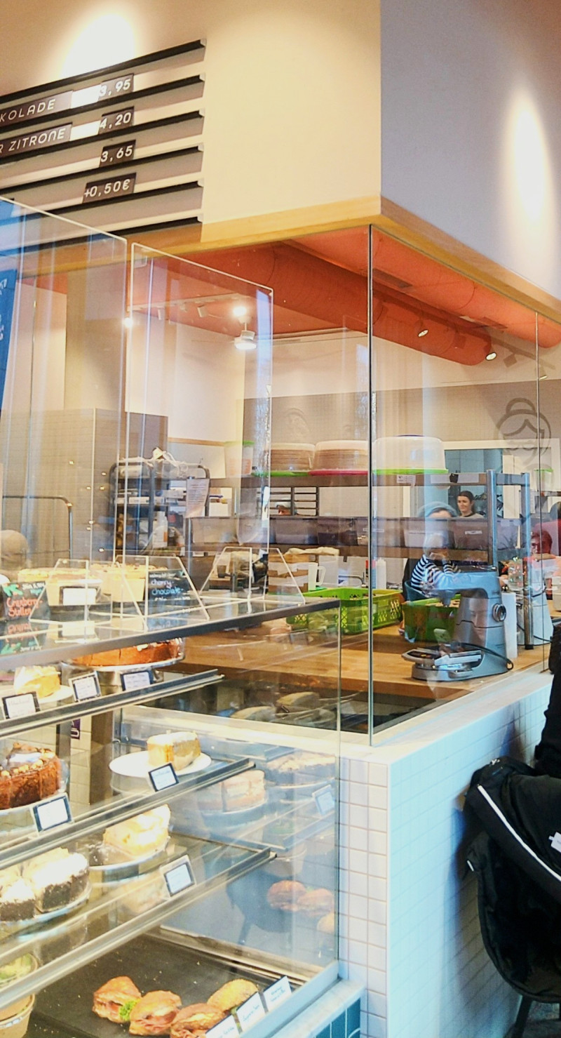 Die allzeit gut bestückte Kuchentheke strotzt nur so vor klassischen und ausgefallenen Kreationen und in der verglasten Backstube nebenan kann man den fleißigen Bäcker:innen bei ihrer Arbeit über die Schulter schauen.
